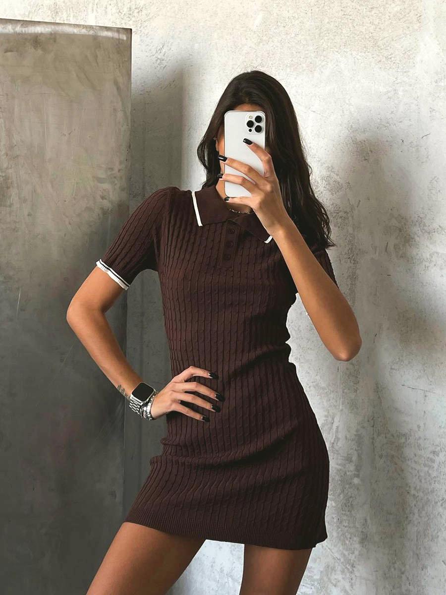 Pearl Detail Knitted Ice Silk A- Line Dress